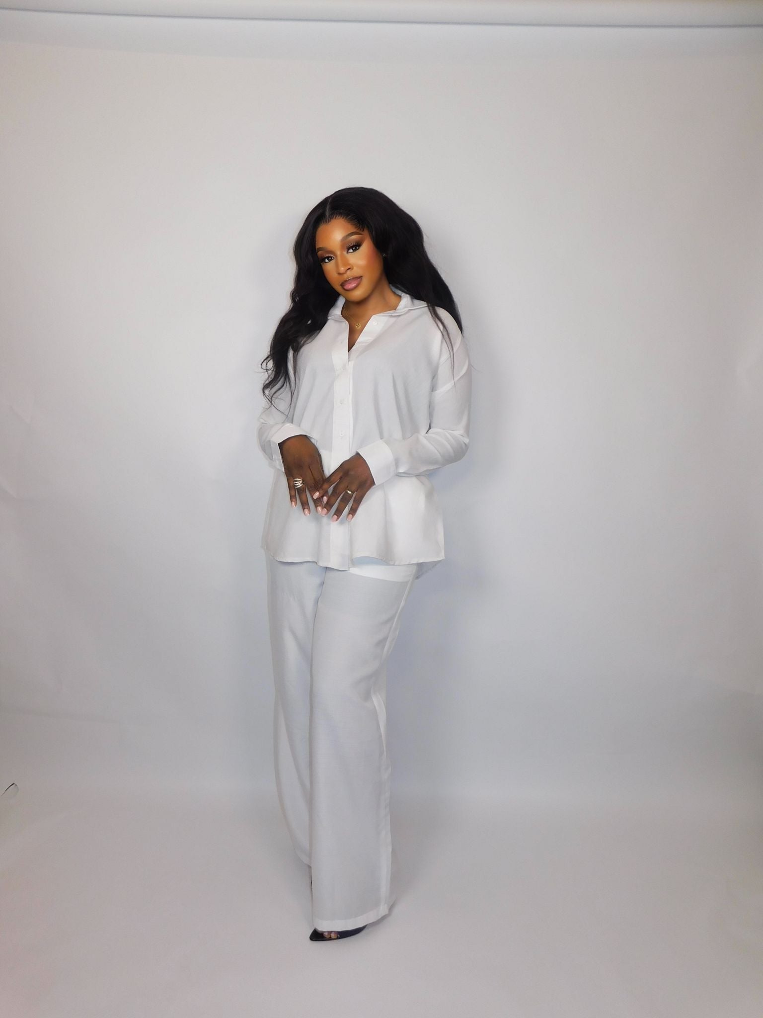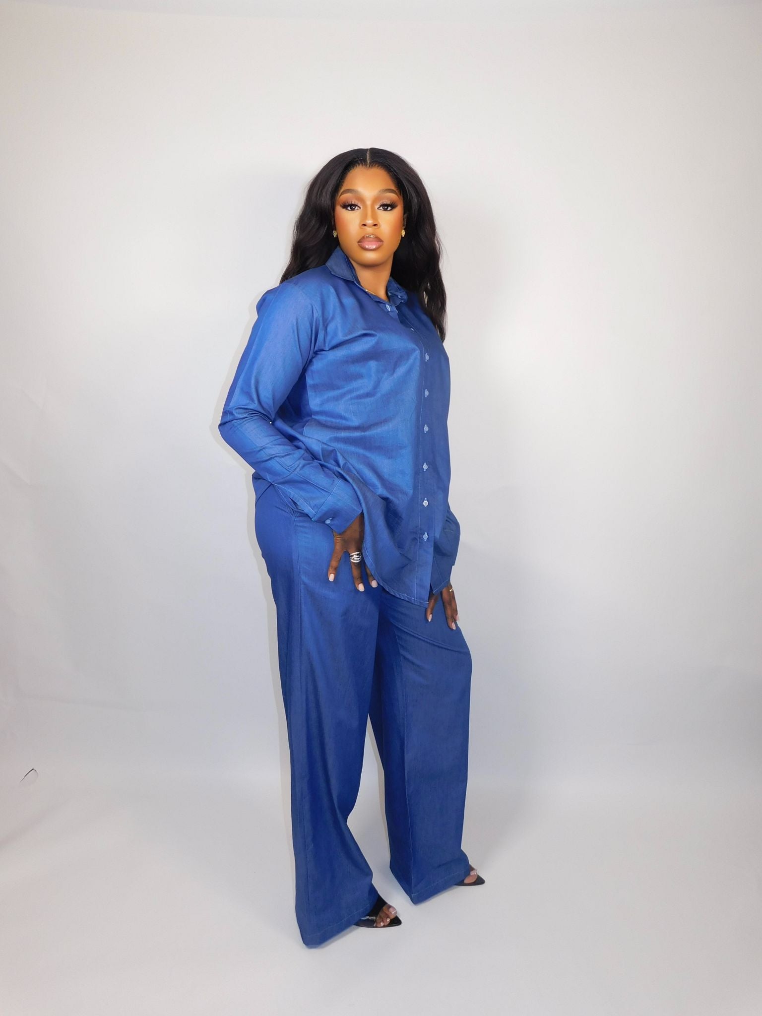 • Ensemble deux pièces : chemise fluide + pantalon large